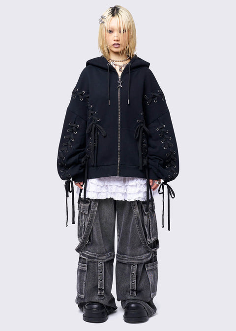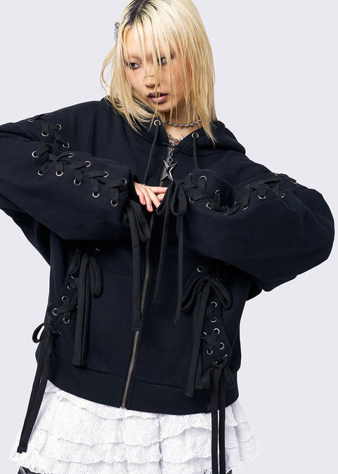 Looking cute zonder te bibberen? De Mia Hoodie is net zo lekker warm als dat ze oversized is! De vele veterdetails geven een zoete look, terwijl de oversized pasvorm haar perfect maakt om overal overheen te gooien. Kort rokje, baggie broek, jurkje: geloof ons dat je Mia overal overheen zal gooien β₯