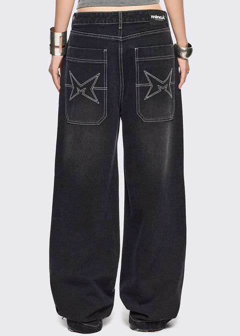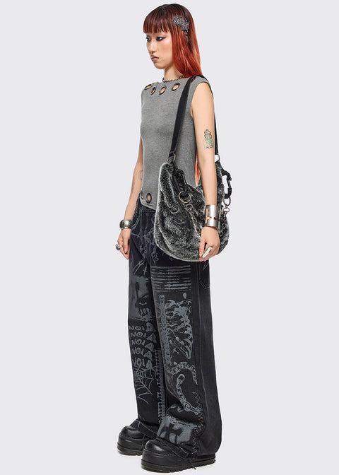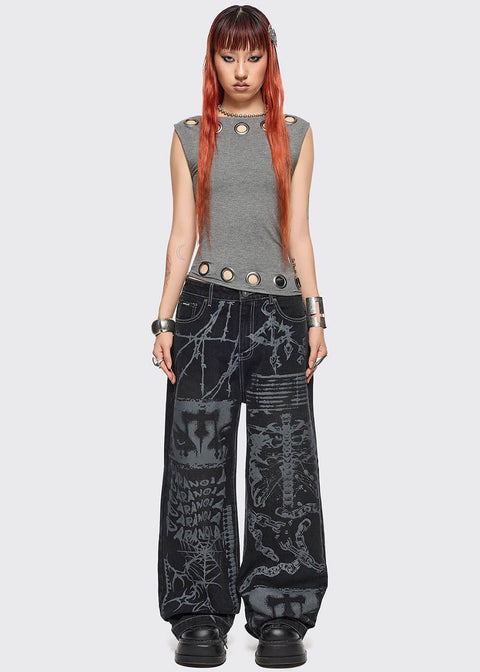 Minga London Paranoia Graphic Baggy Jeans Zwart