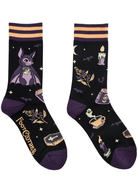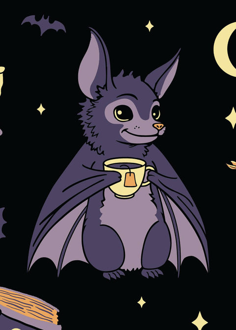 - Motief van een vleermuis, spook, boeken en doodskisten