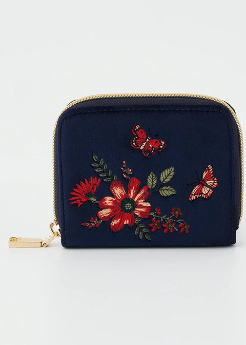 Un papillon finement brodé orne le velours navy : si délicat qu'il coupe le souffle et séduit le cœur. Ne mérite-t-il pas une place dans votre panier ?