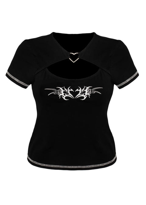 De Auri Top is een zwarte crop top met een duidelijke boodschap: clean, scherp en gewoon bruter dan een standaard basic. De keyhole-hals met zilverkleurige hart-hardware geeft ‘m die “sweet but dangerous” vibe, terwijl de contraststiksels en het hart-borduursel op de borst zorgen voor een sterke streetwear finish. Nodig? Zeker!